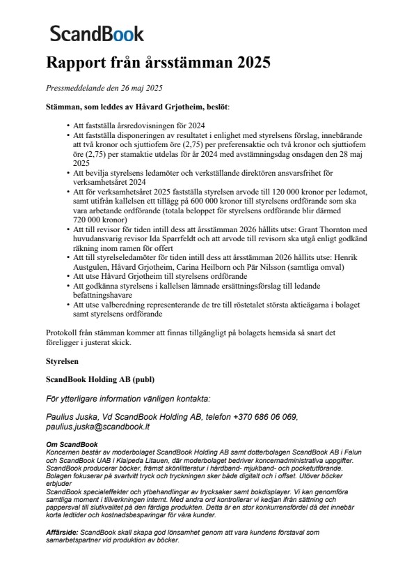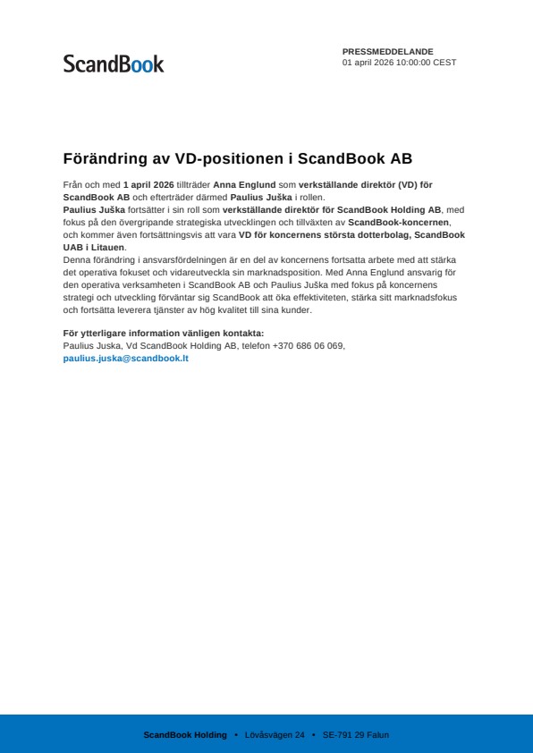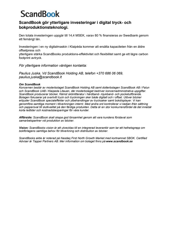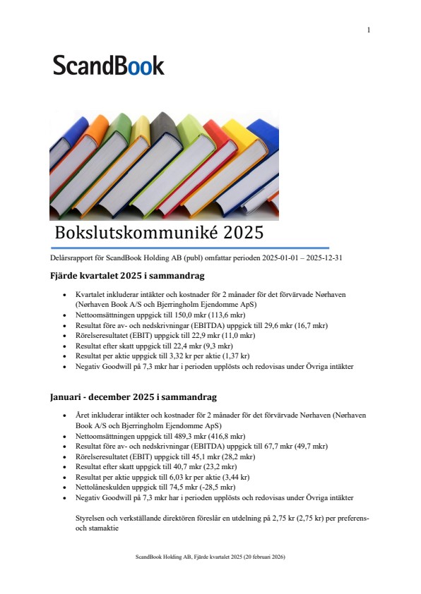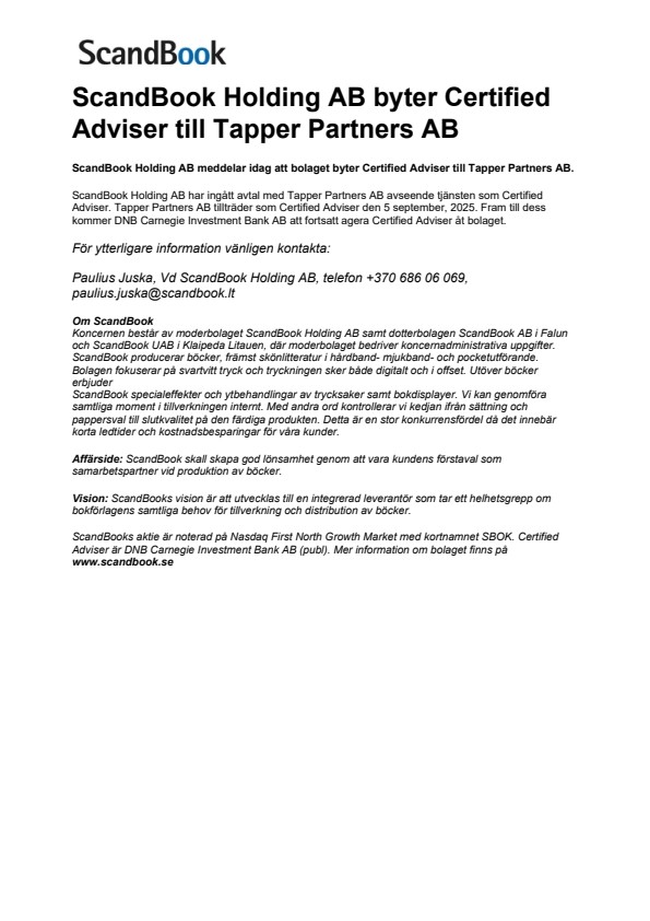 Pressmeddelande från ScandBook Holding AB publ.
