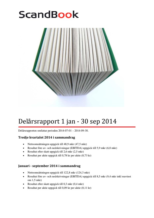 Delårsrapporten omfattar perioden 2014-07-01 – 2014-09-30.