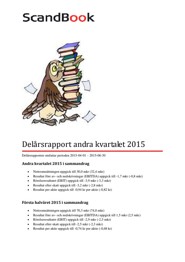 Delårsrapporten omfattar perioden 2015-04-01 – 2015-06-30