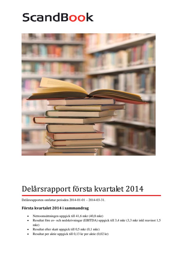 Delårsrapporten omfattar perioden 2014-01-01 – 2014-03-31.