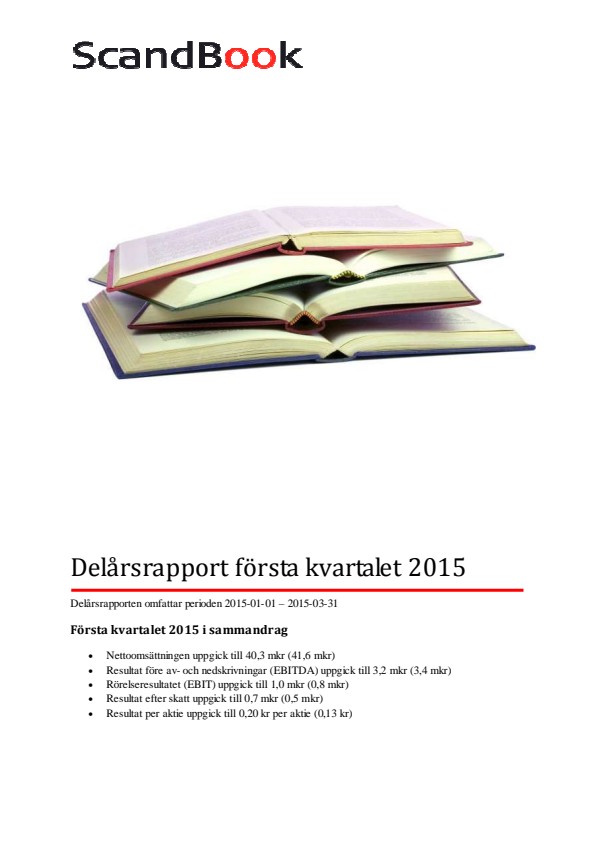 Delårsrapporten omfattar perioden 2015-01-01 – 2015-03-31