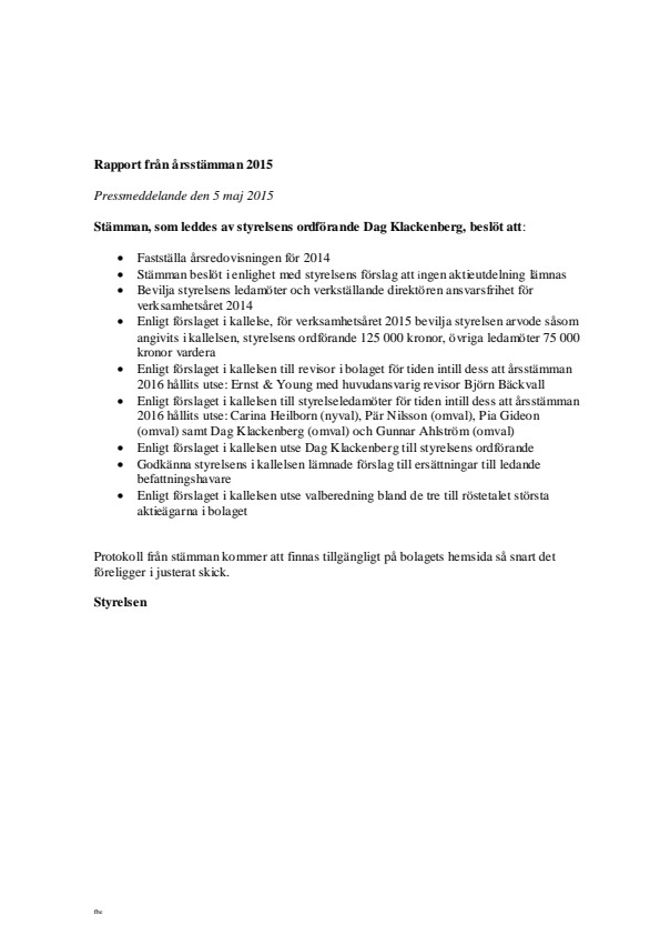 Rapport från årsstämman 2015